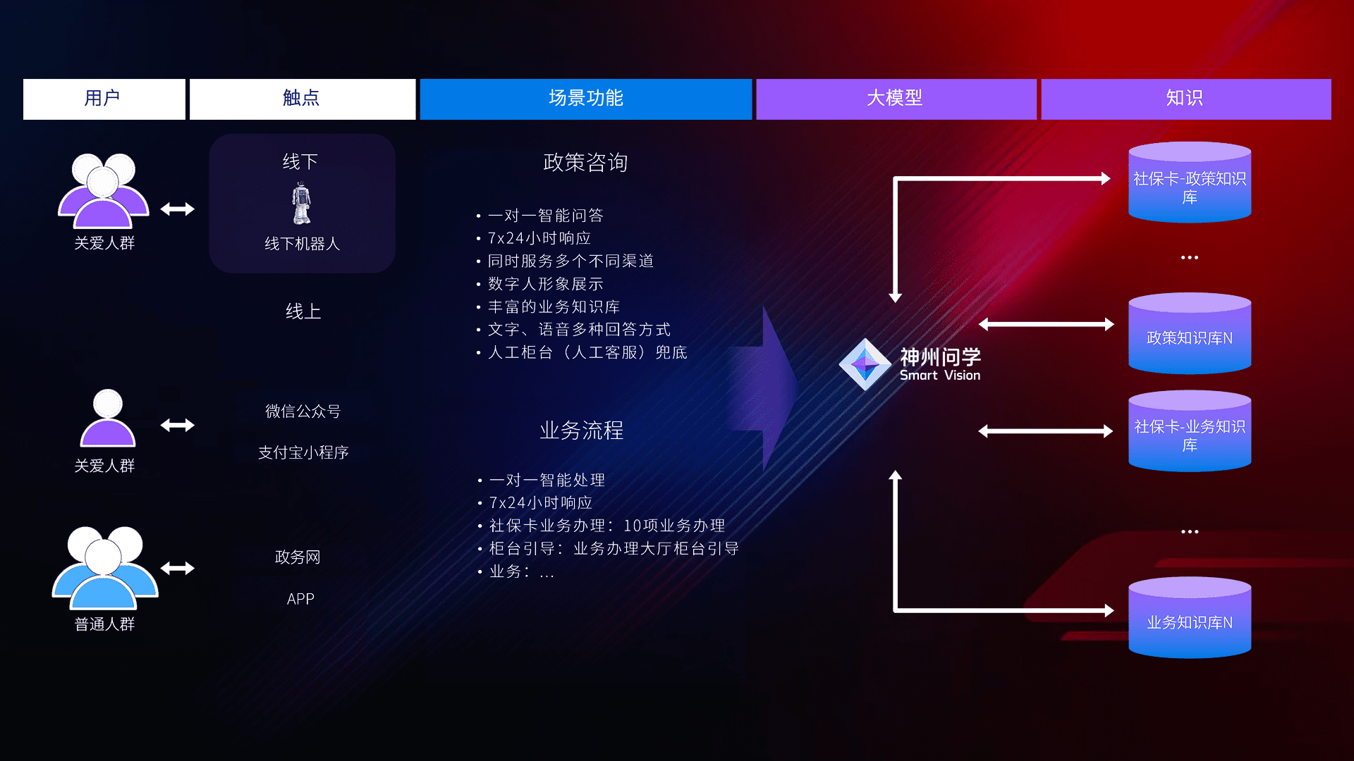• 线上线下全覆盖:线上提供微信公众号、、支付宝小程序、、、、政务网、、、app多种渠道,,与线下机器人形成完整服务体系。。